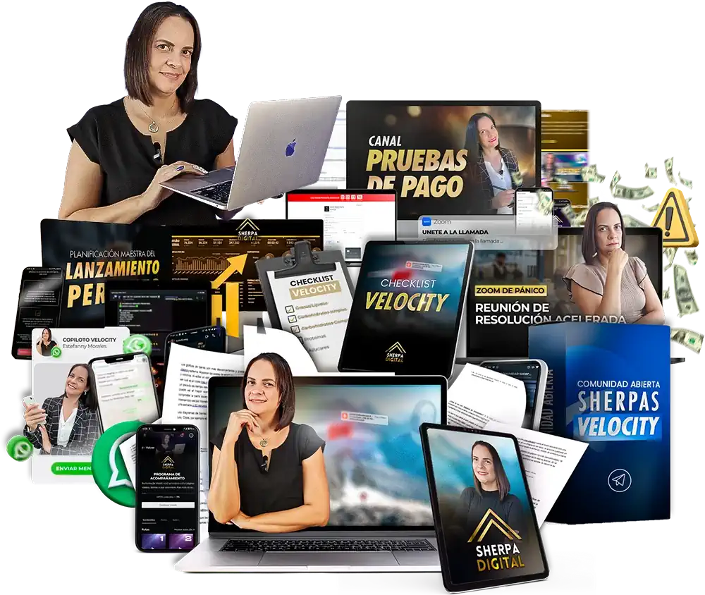 Y no solo eso, tendrás acceso a las herramientas más novedosas, como SHERPA AI, que contiene toda la inteligencia de Estefanny Morales para guiarte en cada paso.